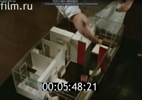 Потім показано колектив радянських вчених, що граються ляльками, які на макеті нібито вирішують дуже важливі завдання стосовно того, як зробити нові будинки найзручнішими для радянських громадян. Про те, що архітектори насправді вирішують розмістити на 40 квадратах площі дві кімнати, кухню, санвузол та ще й кладовки - у фільмі не згадується ні слова.