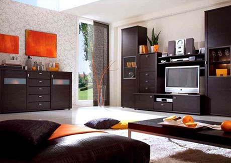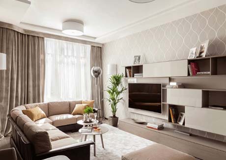 Для того, щоб ваша вітальня виглядала більш розкішною, застосуйте декілька контрастних нейтральних відтінків. Наприклад, білі стіни можуть поєднуватися з карамельною шкірою, виробами з латуні, сірим диваном, і синьо-сірими шафами. Контрасти підкреслять оздоблення та відтінки.