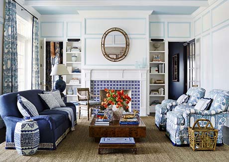 Поєднання різних кольорів може зробити вітальню більш яскравою. Наприклад, в статті розповідається, що синій колір є універсальним кольором, який подобається більшості людей, і який легко контрастує з теплими елементами, такими як шкіра та дерево. Він також може бути нейтральним відносно деяких акцентних кольорів.