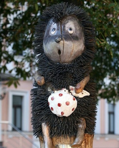 Ежик – этот тот самый Ежик в тумане, который идет в гости к другу Мишке, чтобы считать звезды, и несет ему в котомке малиновое варенье. Это, наверное, самое известное творение скульптора Скритуцкого, ведь именно оно принесло Константину славу, а имя самого творца превратило в бренд. Ежик живет на перекрестке Рейтарской и Золотоворотской. Он редко бывает в одиночестве – там всегда толпы туристов, желающих с ним сфотографироваться.