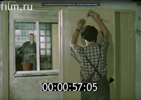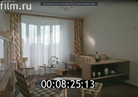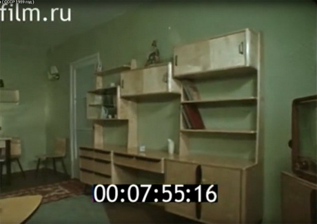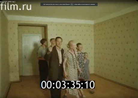 На кадрі нижче сім’я з шести людей в’їжджає в двокімнатну хрущовку з прохідними кімнатами. «У кадрі двокімнатна квартира, призначена тільки для однієї сім’ї!"-з гордістю повідомляє голос диктора. Не для 10 родин, а для однієї, уявляєте? Дві кімнати! Ніхто з нових жильців не запитає - чому, власне, після десятиліть роботи на державу, ми повинні жити вшістьох у двох кімнатах?